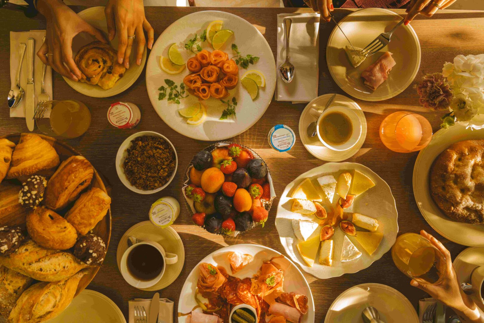 Le petit-déjeuner est préparé chaque matin dans la maison, avec la simplicité et l’élégance qui caractérisent l’ensemble du lieu. Il peut se prendre autour de la grande table ou sur la terrasse.
