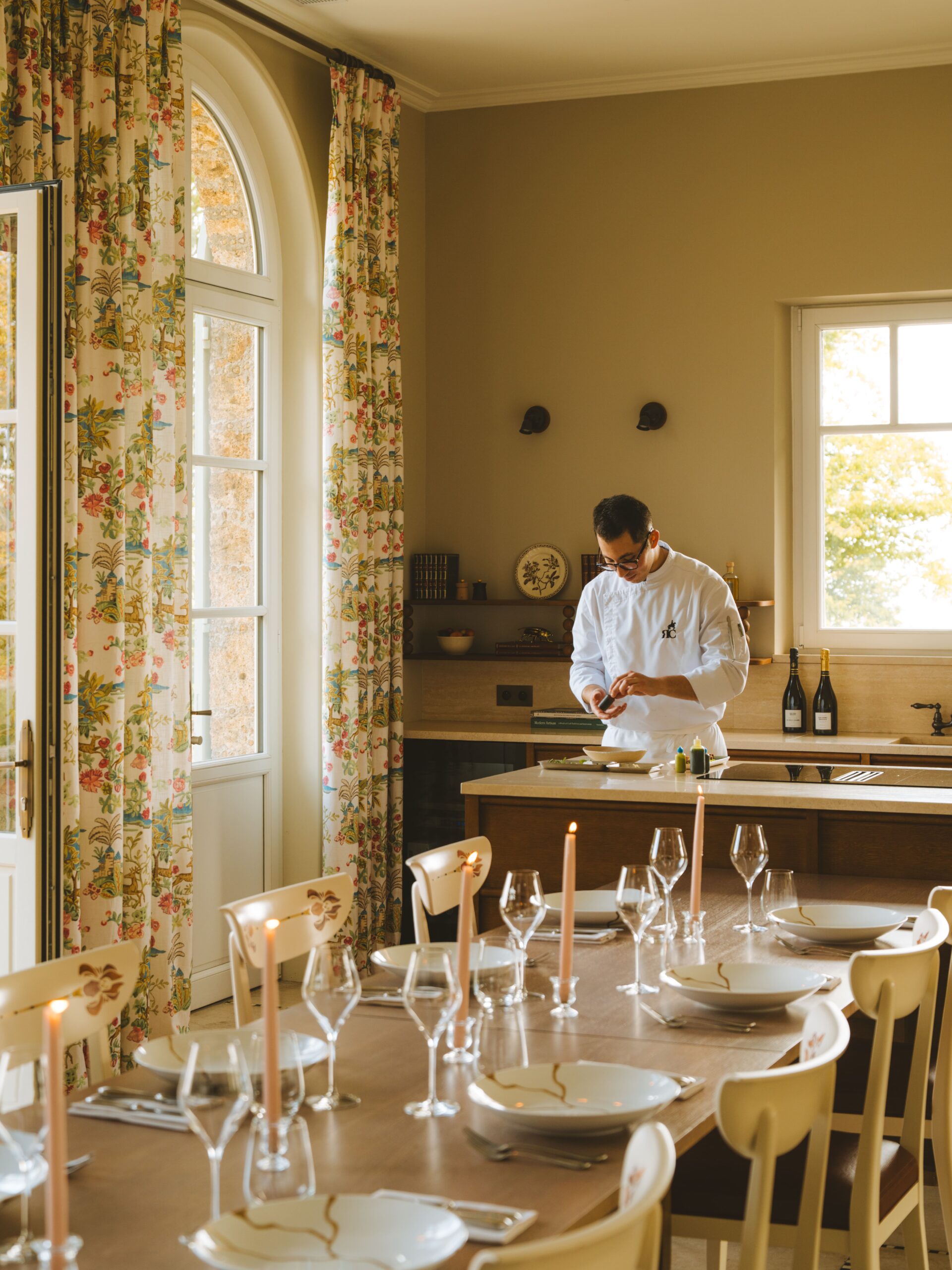 Le soir venu, un dîner à domicile peut être imaginé. Dans la cuisine ouverte de la Villa, le chef Christophe Raoux, Meilleur Ouvrier de France, compose un moment culinaire entièrement sur mesure.