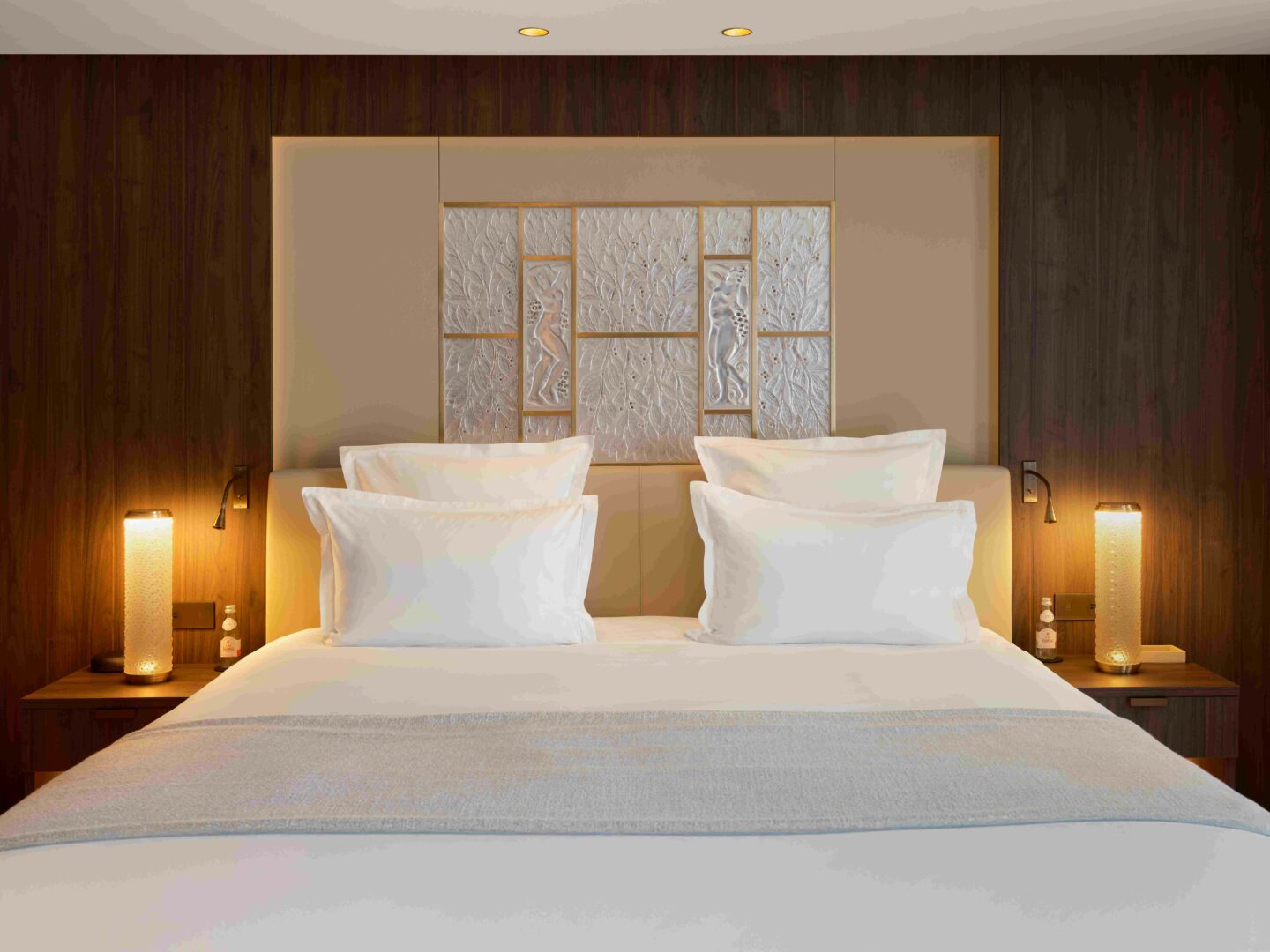 À l’origine, un souhait de Jean-Victor Pastor de faire appel à l’excellence d’un savoir-faire décoratif pour offrir une expérience singulière, dans un décor intimiste, un espace qui procure l’expérience d’être chez soi. Ici, le luxe ne s’exhibe pas, il se murmure. Le cristal devient langage, le décor devient lieu de vie. Une volonté commune s’est dessinée : offrir plus qu’un séjour, une parenthèse. Chaque élément de ce décor réalisé sur mesure par les équipes du Lalique Interior Design Studio a été pensé avec délicatesse, pour une invitation à l’émerveillement.