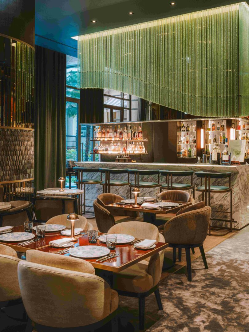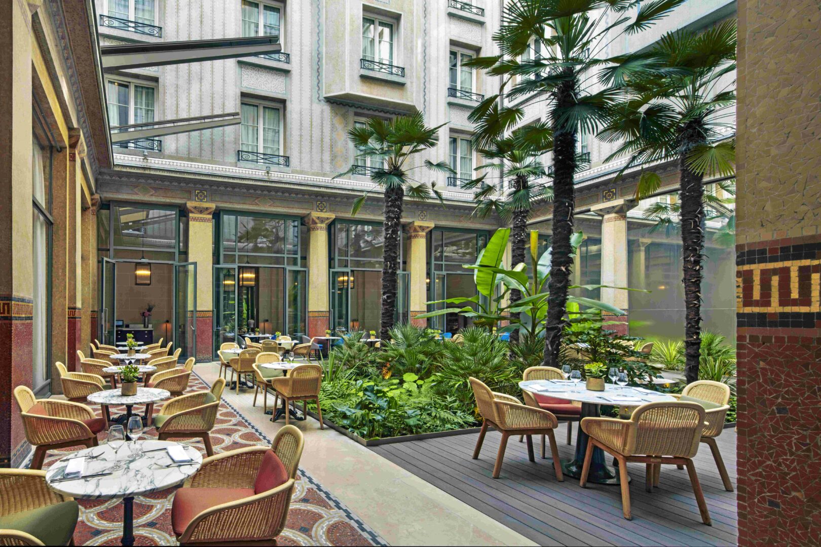 Le Patio : Le patio intérieur, véritable écrin végétal au charme méditerranéen, offre une respiration rare au sein de la capitale. La cour, décorée par des milliers de carreaux de mosaïques en plein cœur de l’hôtel, est le refuge idéal pour savourer un repas ou un cocktail rafraîchissant. Un pilier Art déco orne Le Patio, symbole d’un héritage intemporel et du charme parisien authentique.