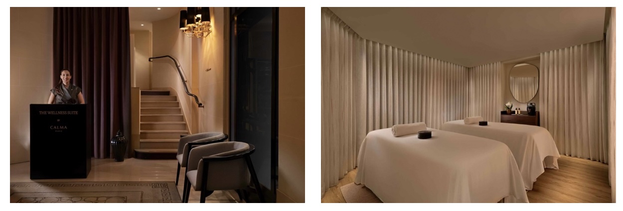 Un instant de calme et de bien-être. Embarquez pour un voyage serein de pure relaxation dans la Wellness Suite. Sous l’impulsion du nouveau partenariat avec Calma Paris, elle vient d’être entièrement redesignée. Véritable cocon de calme, cette Suite a été pensée comme un espace entièrement dédié à la détente du corps et de l’esprit. Un lieu entièrement privatisé le temps d’un moment pour soi, avec une cabine de soins, un Hammam et une douche sensorielle. Elle propose avec la marque une sélection de soins, dont un rituel exclusif : L’Expérience Bien-Être Méditerranéenne Signature du Prince de Galles, a Luxury Collection Hotel, Paris.