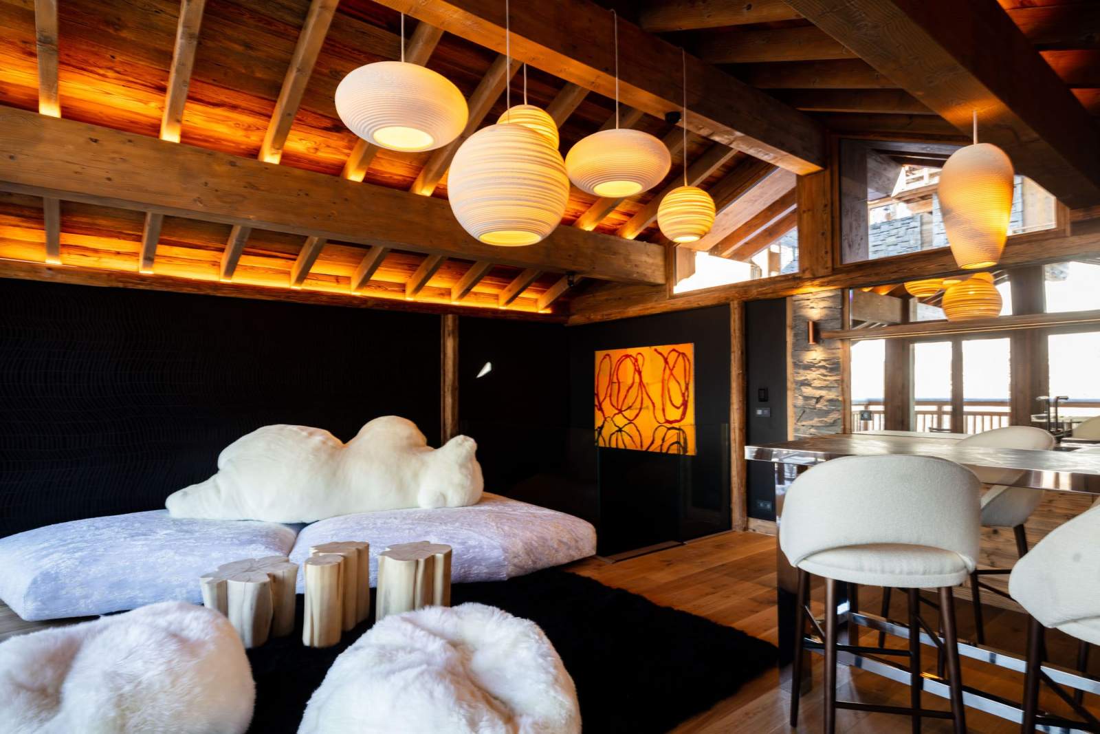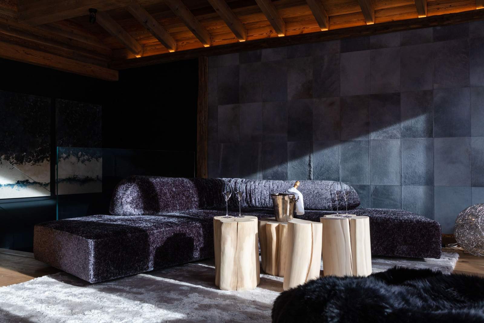 Dès l’entrée, l’œil est capté par un décor chaleureux, où fusionnent fauteuils cossus, tapis moelleux œuvres d’art et décoration cosy et intimiste. Le bois et la pierre se mêlent subtilement avec les équipements contemporains. Diverses œuvres d’art, sélectionnées par Amélie du Chalard, attirent le regard.