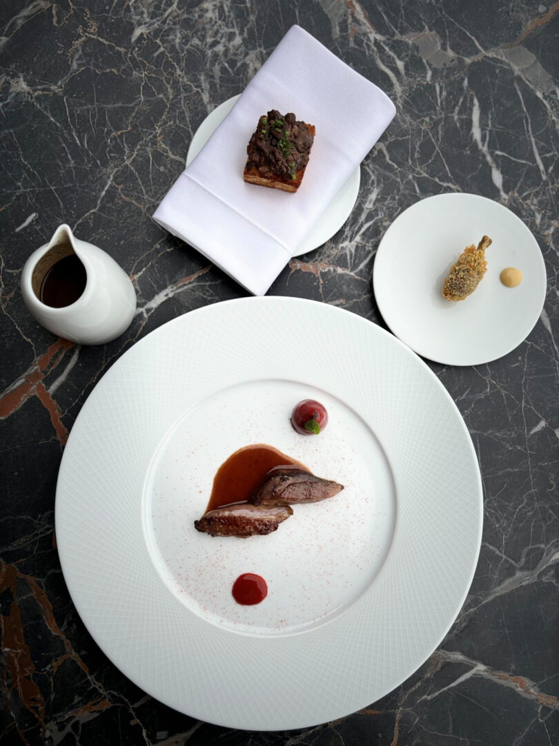 Deux ambiances pour un même regard. La Table du M, restaurant gastronomique intimiste d’une vingtaine de couverts, entre librairie et paysage grand angle d’une part. De l’autre, Les Voyageurs du M, une brasserie aux assiettes plus simples mais toujours interpellantes, face au spectaculaire bar à spiritueux. Clins d’œil gourmands et virevoltés aux escapades du Chef Giuseppe Ruggiero, aux manettes des cuisines depuis l’été 2024. Le Chef signe un propos singulier et ambitieux, un aboutissement logique de ses origines méditerranéennes à sa terre d’adoption alpine.
