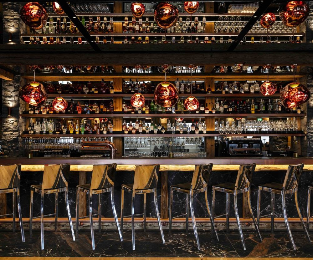 Espace Chill & Lounge du M Lodge, le bar -avec son immense comptoir de 8 mètres- est à la fois un lieu de la convivialité partagée, mais aussi une invitation à une gastronomie généreuse pour vos déjeuners, goûters, apéritifs et dîners. Le Chef propose des planches et tapas revisitées. Sur la terrasse, la vue sur les montagnes offre un spectacle sur des horizons infinis.