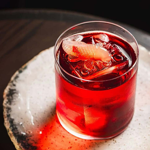 Le Founder’s Negroni revisite le classique avec un gin Nikka infusé à l’huile de coco, du Campari à la fraise et du Cocchi di Torino, sublimé d’un poisson KOI en garniture. Le Masataka Sours marie un cordial aux algues wakame à l’acidité du yuzu, la rondeur de la betterave et le piquant du gingembre mariné.