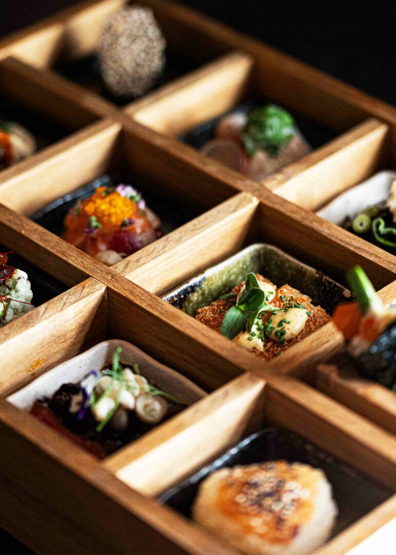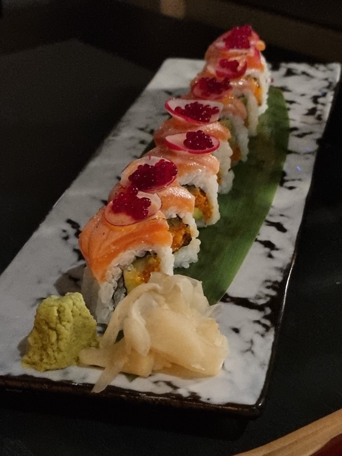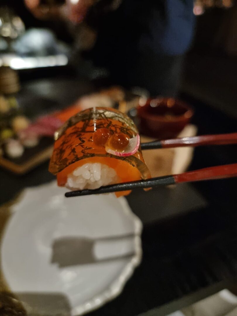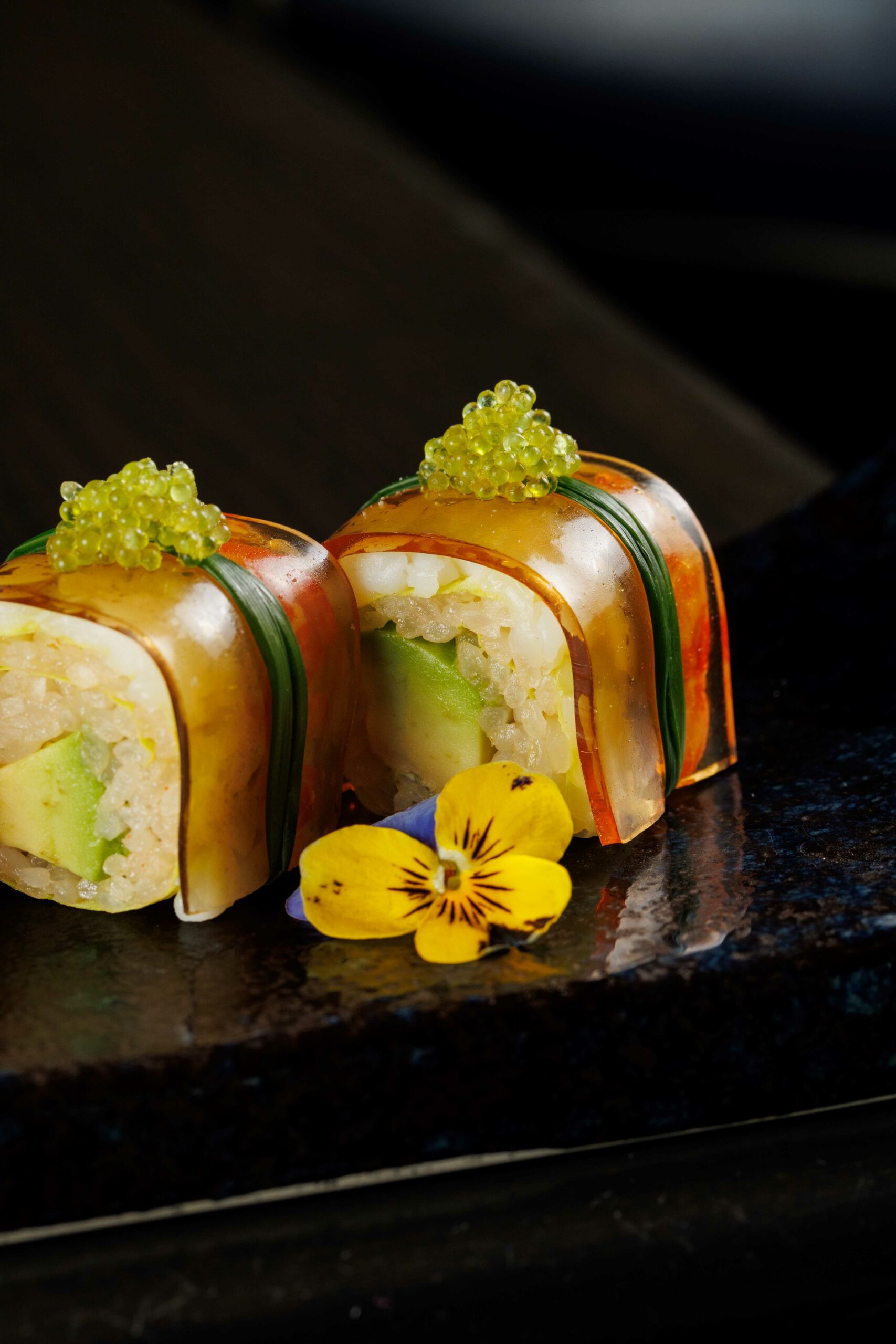 Des sashimis aux découpes parfaites aux grillades robata aux saveurs profondes, chaque plat incarne une cuisine à la fois rigoureuse et inventive. Les créations emblématiques, comme les Crystal Sushi -noix de Saint-Jacques à la gelée de rose, saumon à la menthe et gelée de saké- témoignent de cet équilibre entre raffinement et imagination.