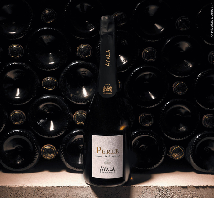 Perle incarne la singularité d’un grand champagne au savoir-faire authentique conservé précieusement et transmis de génération en génération depuis la fondation de la Maison par Edmond de Ayala en 1860. Perle évoque ce joyau précieusement caché dans l’obscurité des caves champenoises de la Maison et qui a donné son sens au nom de cette cuvée d’exception. Elle est toujours millésimée et seulement douze millésimes sont sortis des caves de la Maison à ce jour : 1990, 1993, 1995, 1997, 1999, 2000, 2001, 2002, 2005, 2006, 2012, 2013. Ce treizième millésime, Ayala Perle 2015, marque les trente années d’existence de cette cuvée d’exception à tirage très confidentiel.