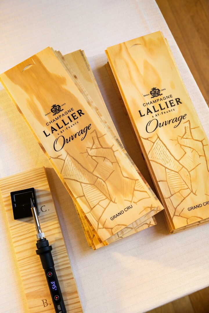 Pour célébrer le savoir-faire de Lallier, Leelou Guével-Balbusquier, artisane champenoise, signe un coffret autour de la cuvée Ouvrage en édition très limitée.