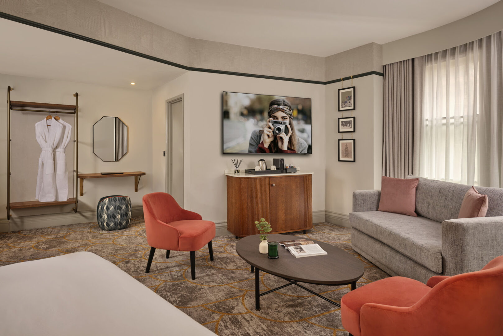 L’expérience culinaire affirme une identité profondément ancrée dans son territoire et se décline en plusieurs espaces au sein de l’hôtel. Au cœur de cette signature gastronomique, le nouveau concept O.W at The Grand rend hommage à Orson Wright, visionnaire à l’origine du bâtiment. Pensé comme un véritable lieu de vie, vibrant du matin jusqu’au soir, cet espace pensé comme une brasserie, célèbre une cuisine authentique et locale. À l’honneur : des tartes britanniques artisanales primées, véritables icônes du terroir, accompagnées d’une sélection raffinée de gins régionaux soigneusement sourcés. Trois mots caractérisent ce lieu : générosité, modernité, caractère.