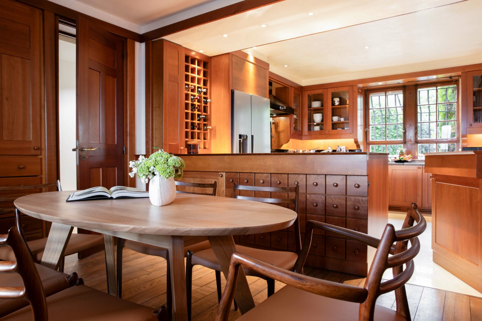La Villa Cologny déploie un salon d’une envergure exceptionnelle, baigné de lumière et pensé pour conjuguer confort et raffinement. Ses cinq chambres et cinq salles de bains offrent un espace privé généreux, tandis qu’une cuisine ouverte entièrement équipée et un bureau avec vue imprenable sur le lac ajoutent une touche de modernité et de fonctionnalité.