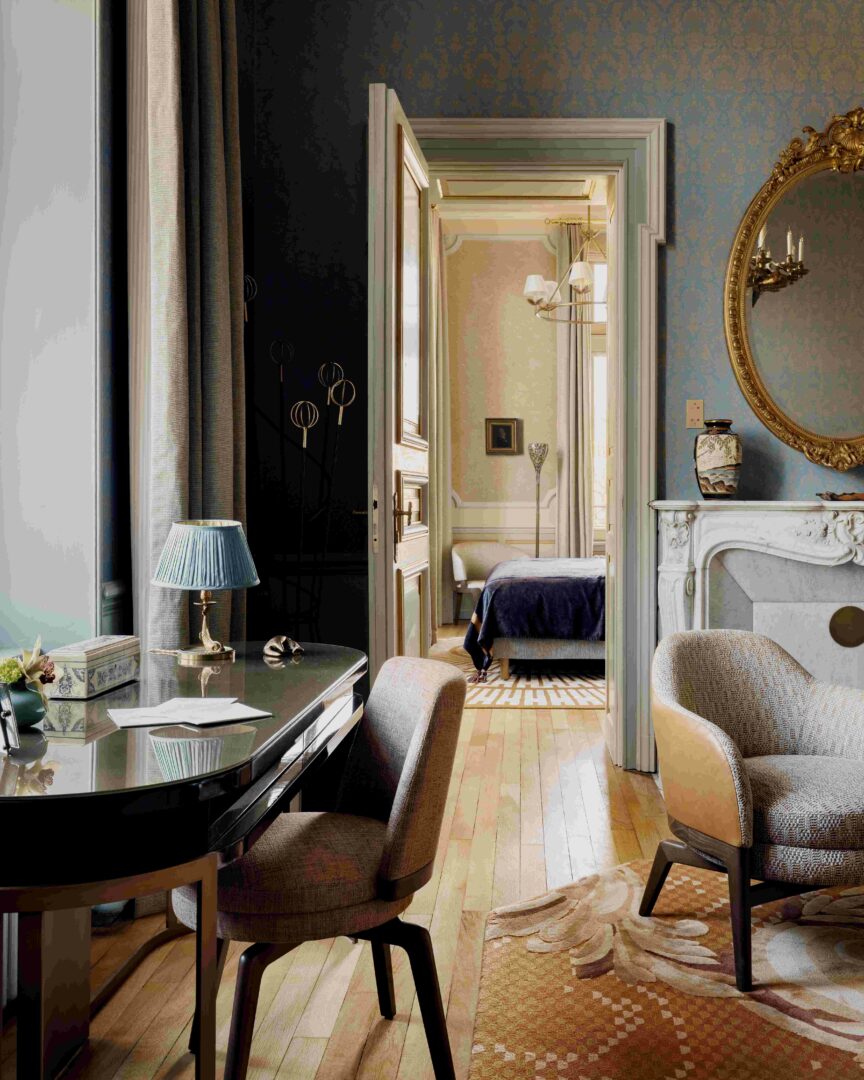 Ce boutique-hôtel de luxe cultive l’atmosphère d’une luxueuse demeure privée, offrant la sensation d’être chez soi. Il vous invite à plonger dans un univers feutré et élégant, où règne ce raffinement propre aux grandes Maisons. Pensé comme une maison privée intimiste, avec ses 22 chambres -dont deux suites et un penthouse privé- l’hôtel occupe les différents espaces de l’ancienne résidence familiale de la famille Baldauff : la Villa elle-même, le Pavillon juste à côté, aménagé dans les anciennes écuries, et la cour intérieure qui les relie.