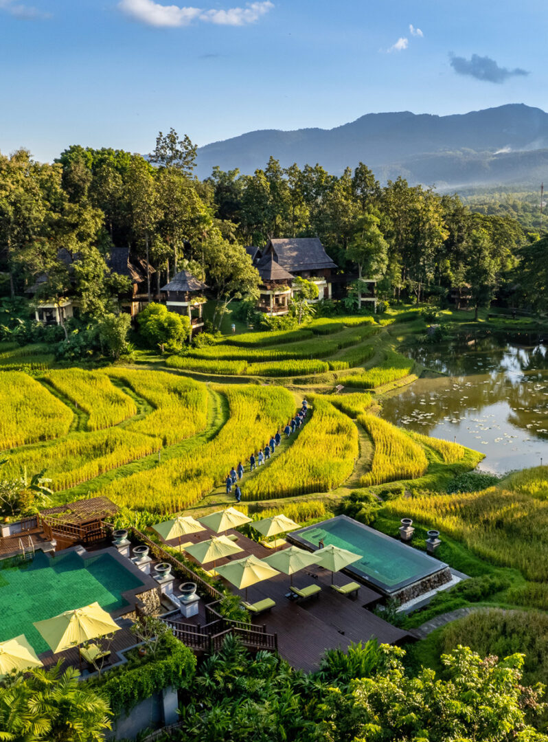 À quelques encablures de Chiang Mai, Four Seasons Resort Chiang Mai se fond dans un paysage emblématique du nord du pays, entre rizières en terrasses et collines ondoyantes.