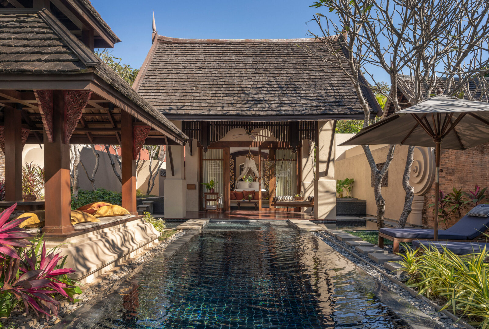 Pensée comme une immersion délicate dans l’âme locale, l’adresse puise dans l’héritage Lanna pour façonner son architecture et son atmosphère. Bois précieux, toits élancés et savoir-faire artisanal composent un décor authentique, prolongé par une cuisine thaïlandaise raffinée, élaborée à partir de produits régionaux.