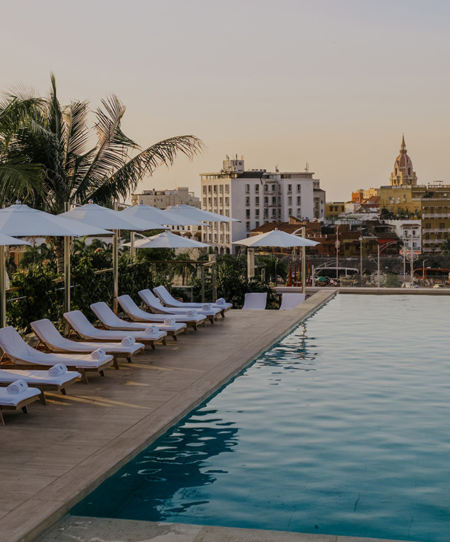 Derrière ses façades chargées d’histoire, les chambres et suites s’ouvrent sur un décor vibrant : les toits colorés de Cartagena, ou les reflets paisibles de l’Étang de Carthagène.