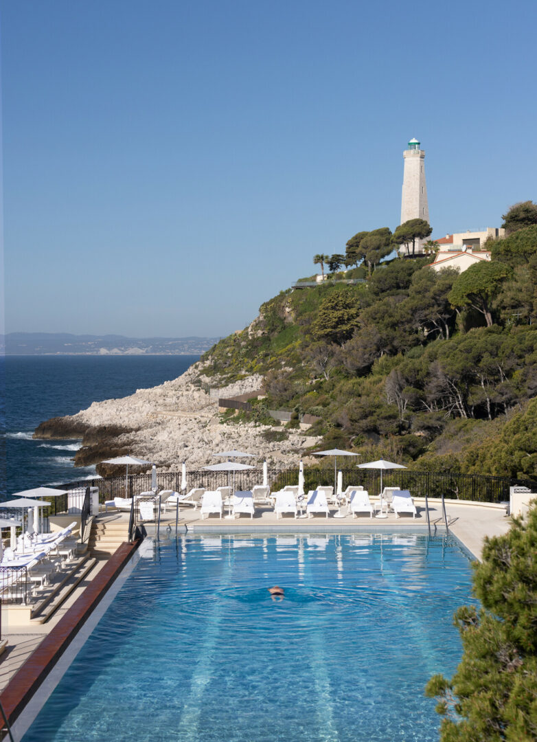 Face au jardin et à l’horizon, La Véranda joue la carte d’un chic décontracté, tandis que Club Dauphin, accessible par funiculaire, dévoile l’une des piscines les plus iconiques de la Côte d’Azur, semblant se fondre dans le bleu du large.