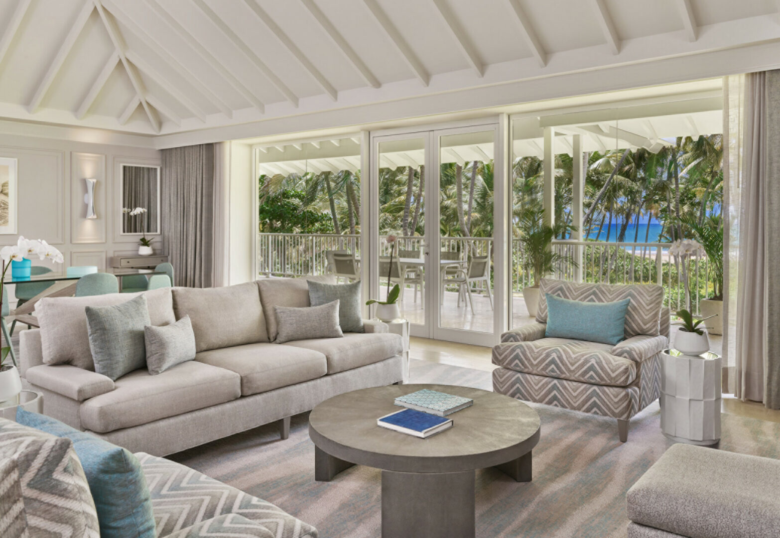 Les chambres et suites, ouvertes sur l’océan ou la végétation tropicale, prolongent cette sensation d’évasion. Leurs terrasses invitent à vivre pleinement dehors, au rythme des alizés et de la lumière changeante, comme une continuité naturelle du paysage environnant.