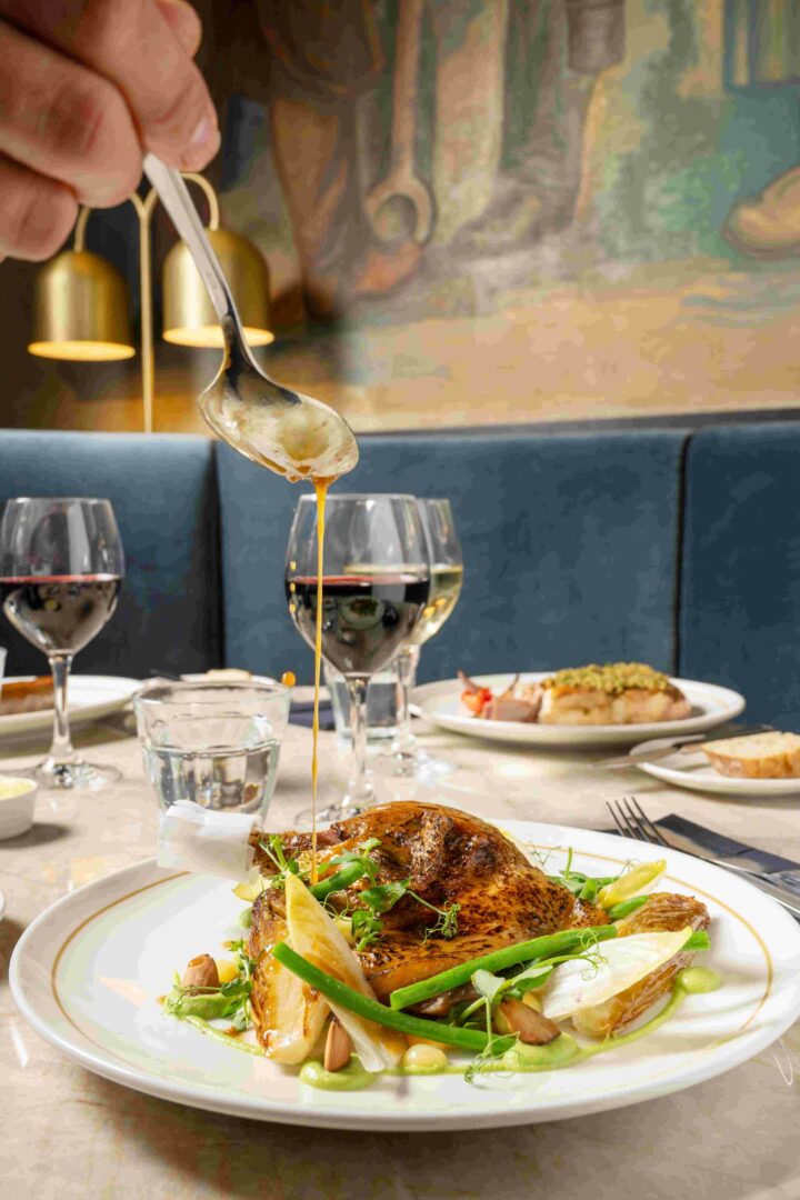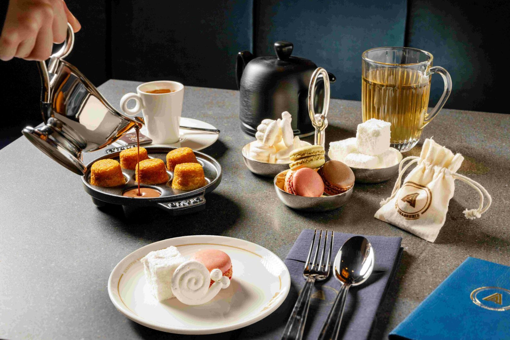 Des éléments d’origine -tels que les buffets en bois de palissandre, les comptoirs en marbre et les luminaires vintage- ont été préservés. Les touches Art déco incluent des accents métalliques, une signalétique d’époque et des tableaux historiques restaurés et repositionnés, désormais mis en valeur par des œuvres contemporaines d’artistes locaux.