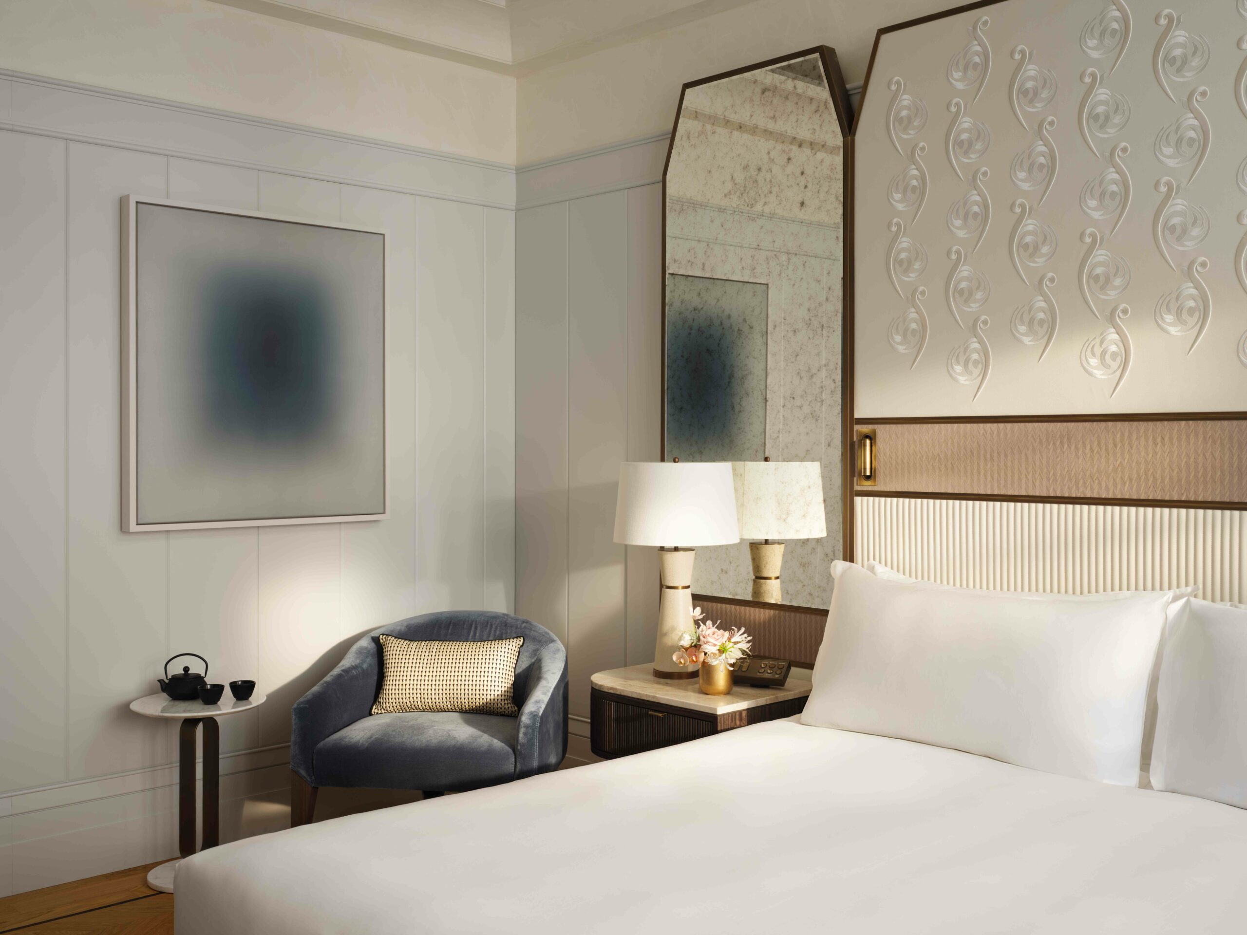 Une palette subtile de couleurs neutres et douces, des matériaux nobles et des espaces généreux contribuent à une sensation d’apaisement et d’élégance. L’hôtel propose trois Suites Signature Mandarin exclusives et une somptueuse Suite Royale, toutes pensées comme de véritables refuges empreints de luxe et de sérénité.