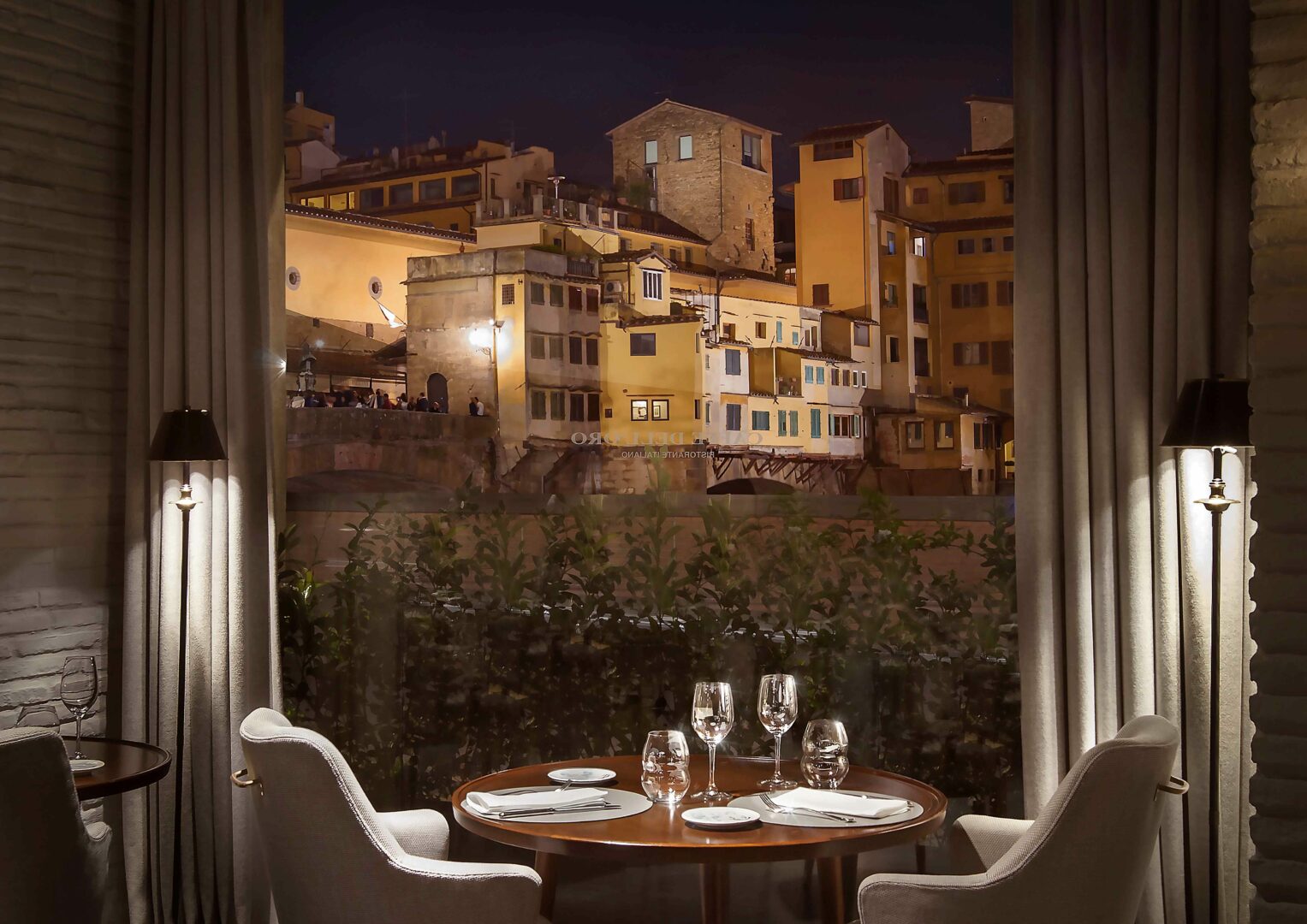 Restaurant Caffè dell’Oro dettaglio vista Ponte Vecchio – Crédits photos ©Hotel Portrait Firenze
