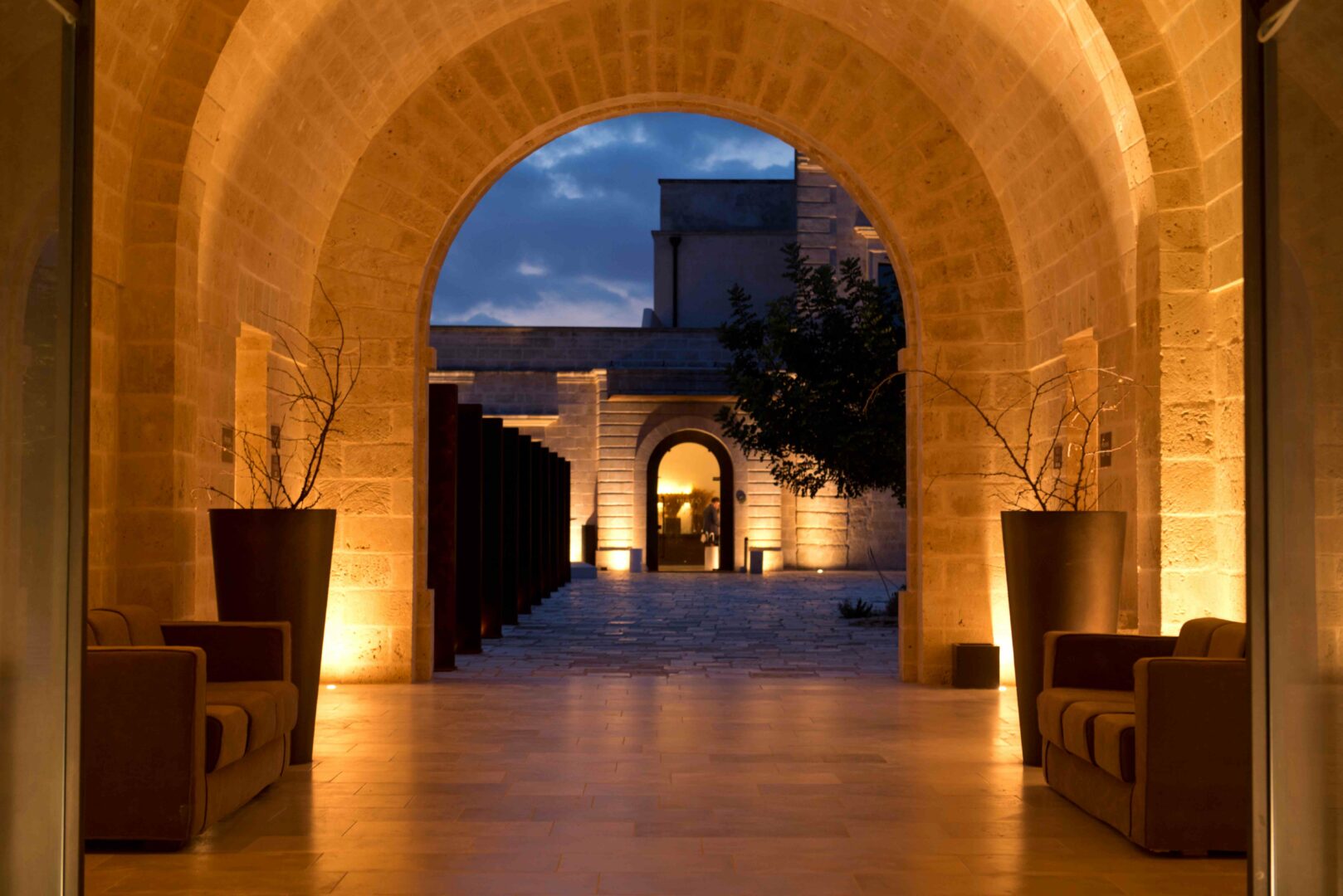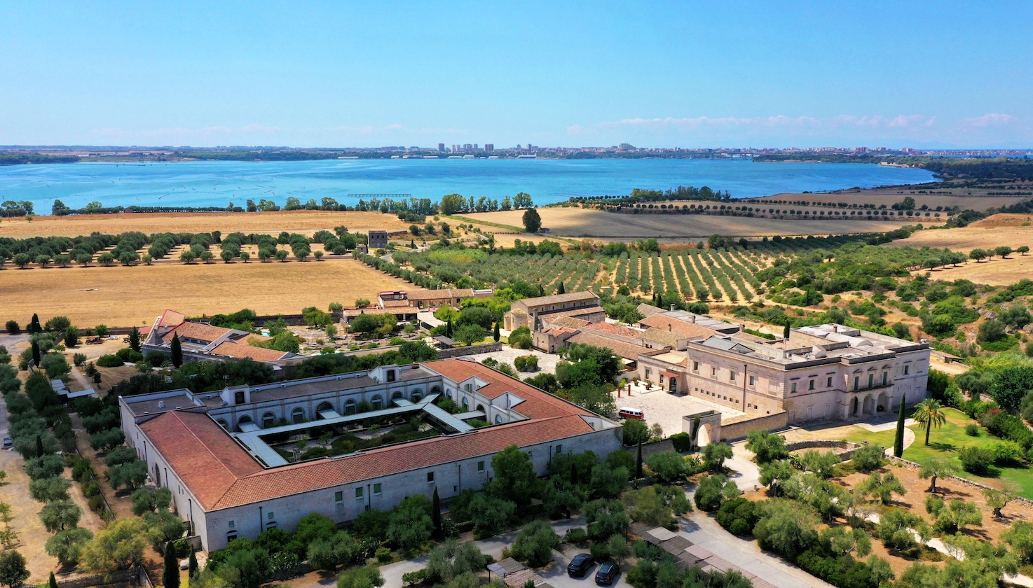 Il offre aujourd’hui : une basilique du XIᵉ siècle entièrement restaurée, un spa minéral de 2 000 m² digne des thermes antiques, des chambres et suites raffinées, entre voûtes de pierre et terrasses sur les oliveraies, une table enracinée dans la terre, du potager au Mar Piccolo, où les produits frais arrivent chaque matin.