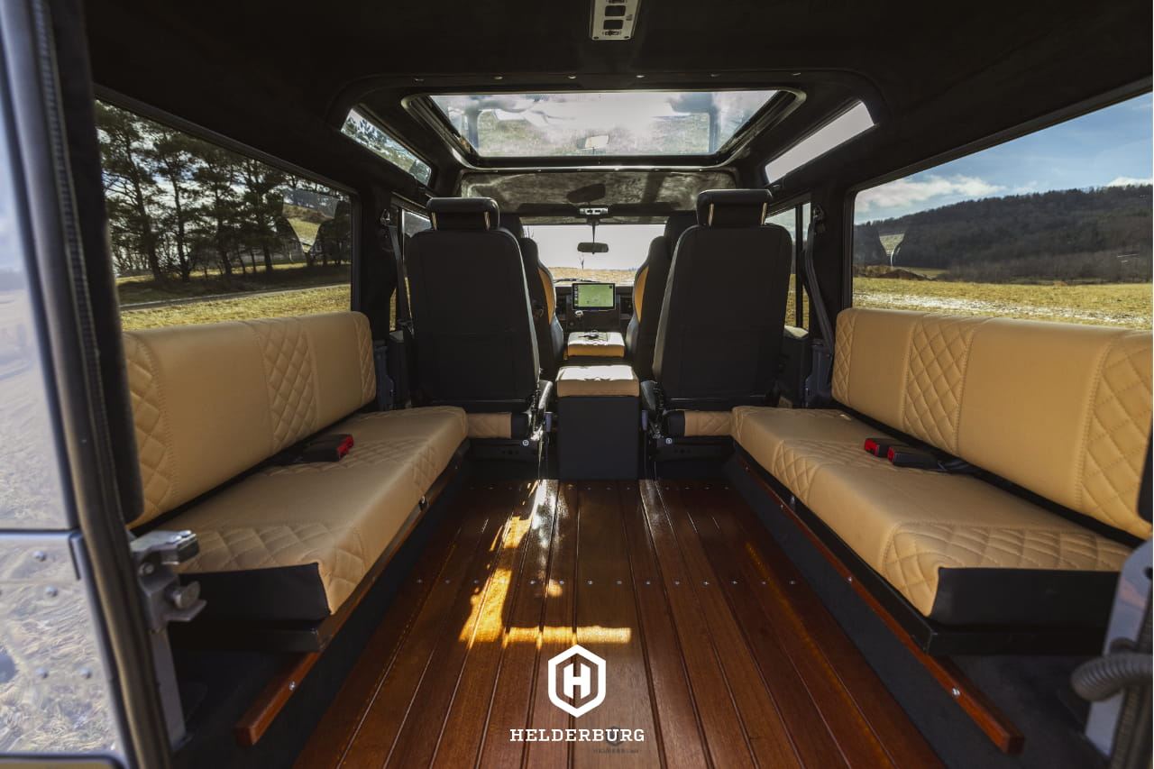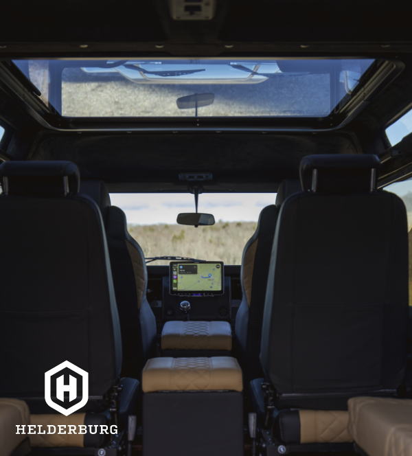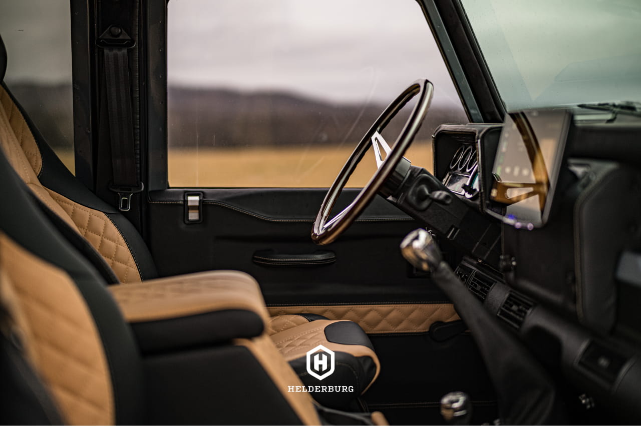 Basé sur un Land Rover Defender D110, ce modèle unique dépasse largement le cadre du restomod. Helderburg, bureau d’études américain fondé par Paul Potratz, adopte une approche radicale : chaque véhicule est conçu comme un système propriétaire, entièrement intégré. Ici, aucune dépendance à des composants standards -tout est pensé, développé et ajusté en interne pour répondre à une vision globale.