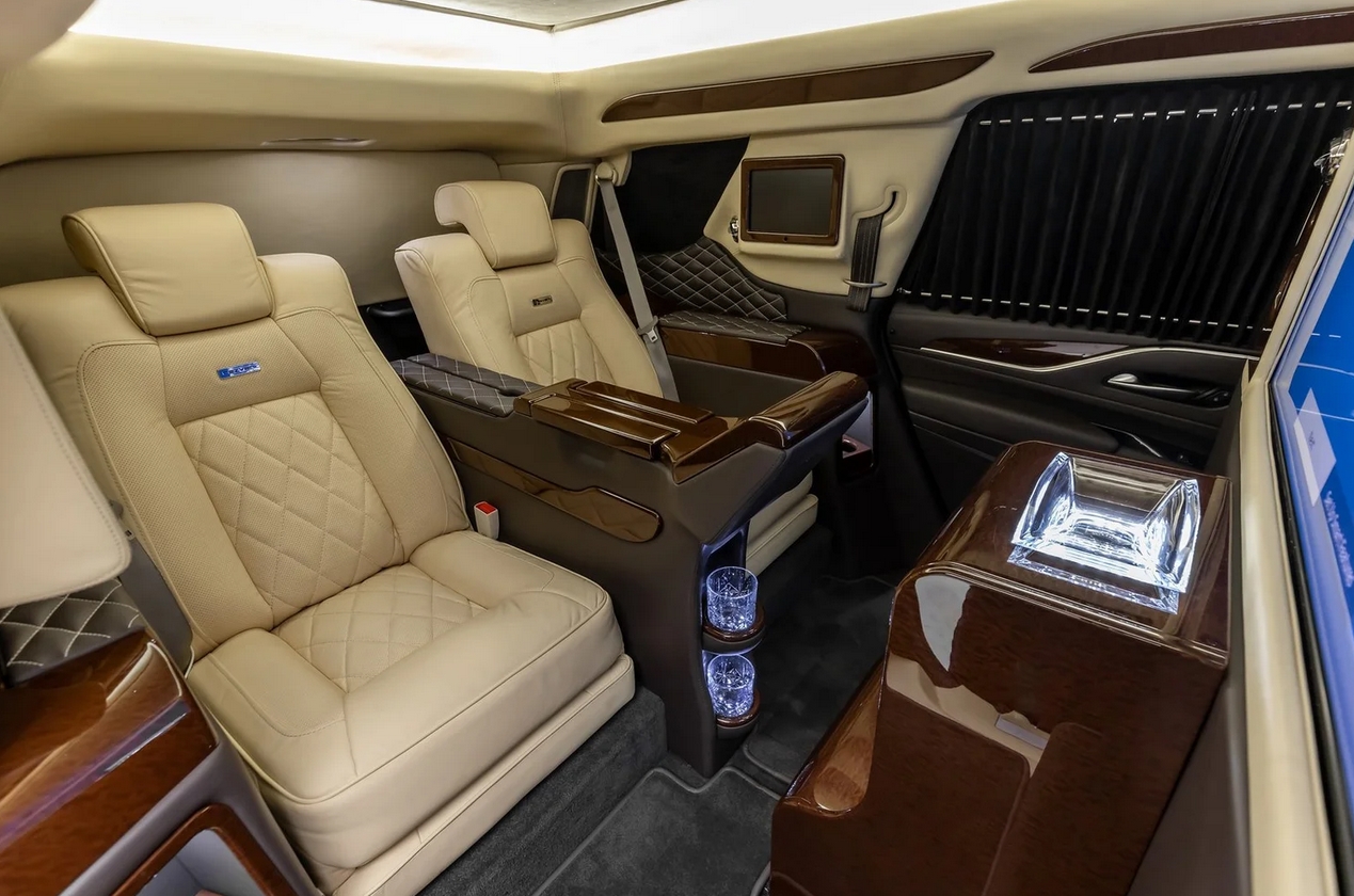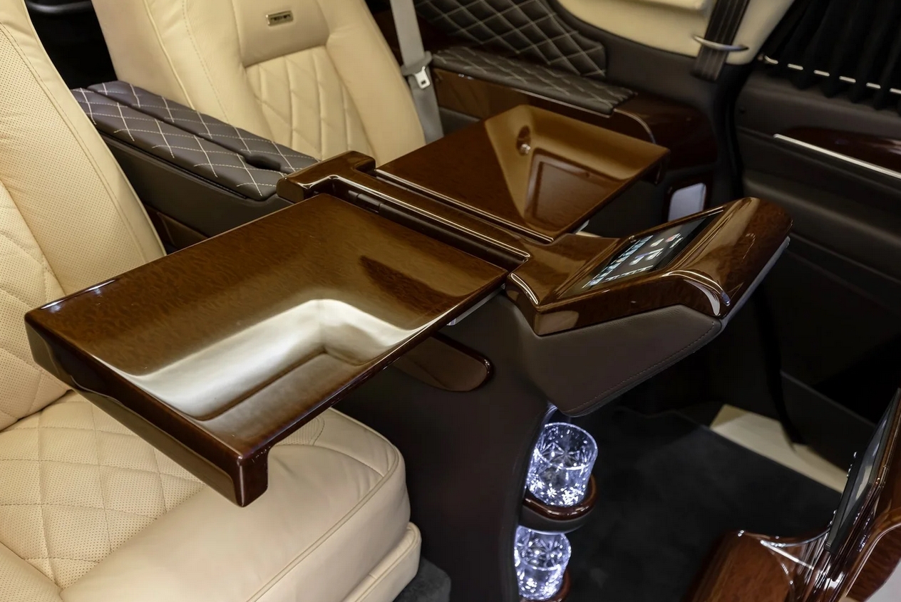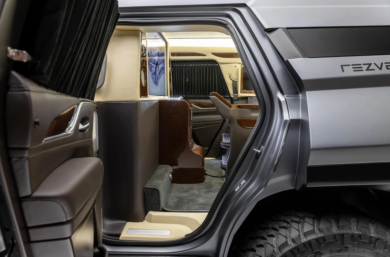Mais c’est en ouvrant ses portes que le Vengeance révèle toute sa dualité fascinante. À l’arrière, l’univers change, le monde extérieur disparaît : le militaire cède la place à un raffinement digne des plus prestigieuses limousines.