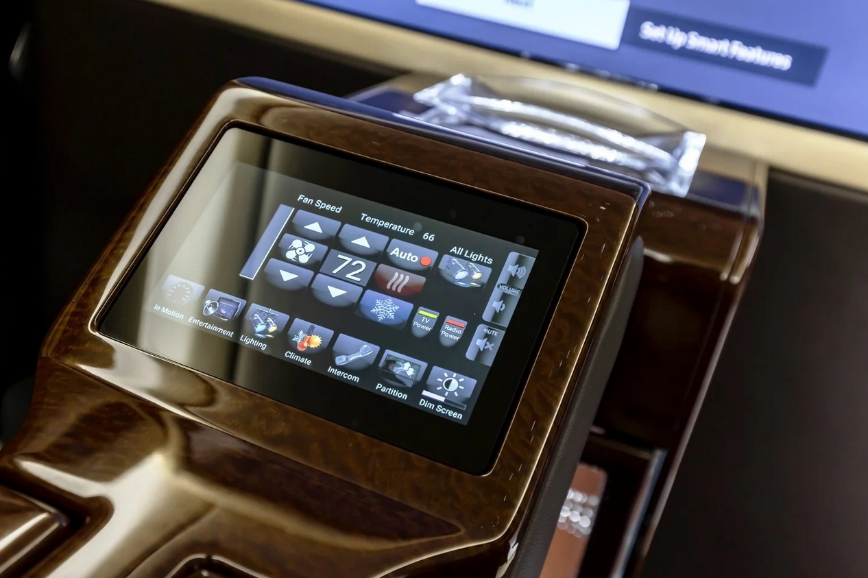 Deux sièges Executive inclinables, dotés de fonctions massage et refroidissement, vous accueillent dans un confort absolu afin de vous offrir une expérience de voyage incomparable. Un bar intégré et complet avec verrerie, un écran rétractable avec Apple TV, des iPads, ainsi qu’un ciel de pavillon inspiré d’une nuit étoilée plongent les passagers dans une atmosphère feutrée et immersive. Une cloison de séparation garantit une discrétion totale, transformant l’habitacle en véritable suite privée mobile – parce que certaines décisions se prennent loin des regards. Et si vous souhaitez encore plus de confort, le Vengeance est entièrement personnalisable, avec même une machine à café ou à glace.